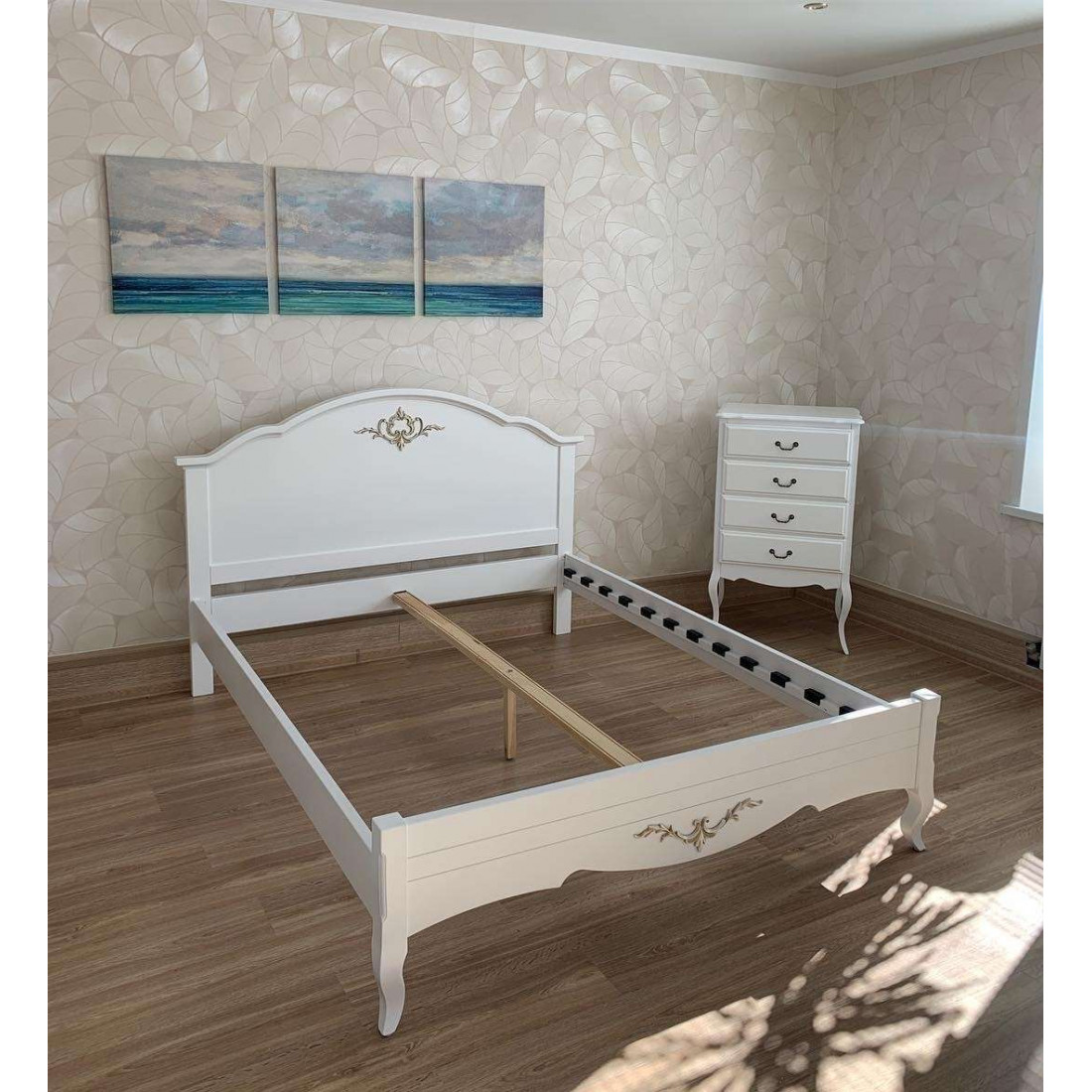 Кровать оснащена ортопедическим основанием для матраса — ламелями.