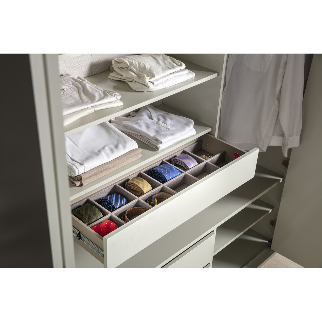 Корпуса ящиков на шариковых и телескопических направляющих нижнего крепления с доводчиком системы push-to-open c механизмом замедления закрытия ящика.